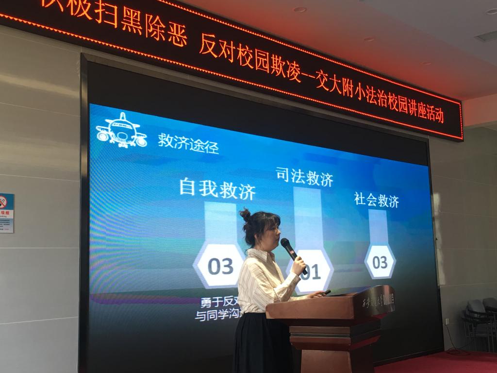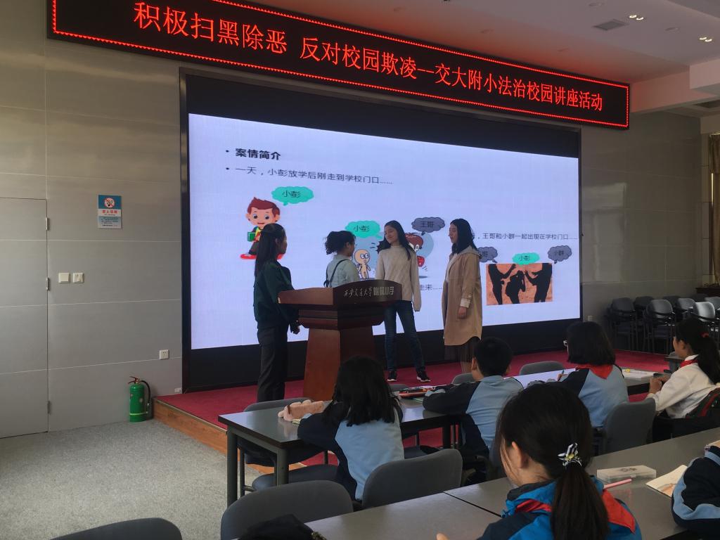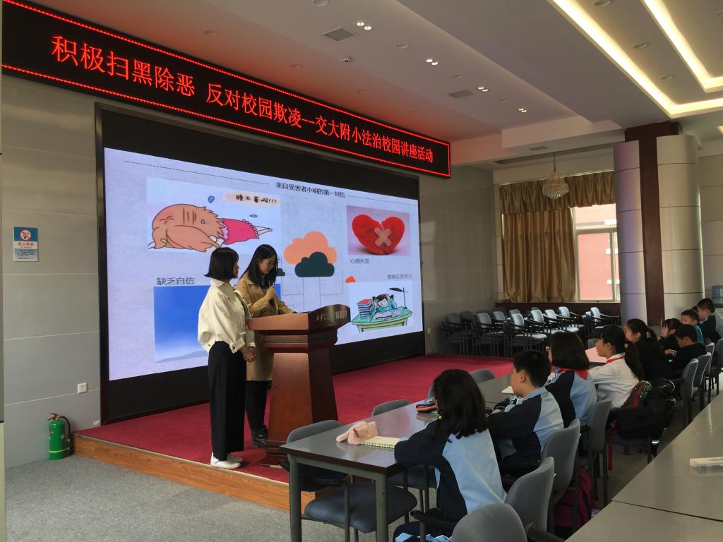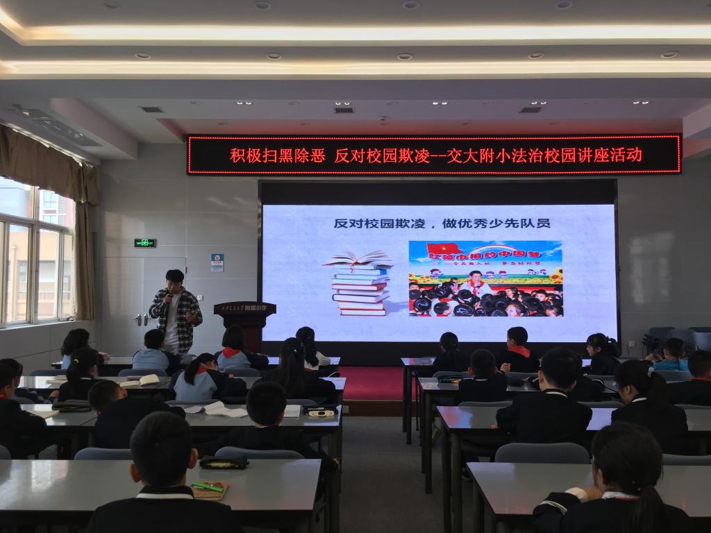 2019年4月15日,B体育平台B体育(中国)硕7155班(三年制)党支部一行10人来到B体育平台附属小学,以“积极扫黑除恶,反对校园欺凌”为主题开展了校园法治宣讲活动。本次宣讲分三组进行,由浅入深,以视频、情景表演、信件沟通等方式形象生动的向小学生们传达了面对校园欺凌,该如何保护自己,如何拿起法律的武器保护自己的权益。