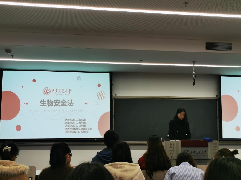 B体育(中国)硕1173班党支部组织委员罗梓瑜做了《中华人民共和国生物安全法》(以下简称生物安全法)的详细解读。她详细介绍了生物安全法的立法目的、原则和适用范围,并且着重介绍了生物安全法的立法亮点:明确了生物安全风险防控的基本原则和制度、建立健全了生物安全风险防控的领导体制。她认为2021年4月15日,中华人民共和国生物安全法正式施行,恰逢第六个全民国家安全教育日,赋予了这部法律施行以特殊的意义。生物安全关乎人民生命健康,关乎国家长治久安,关乎中华民族永续发展,是国家总体安全的重要组成部分,也是影响乃至重塑世界格局的重要力量。